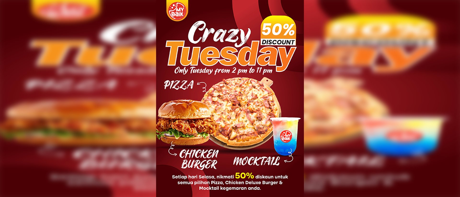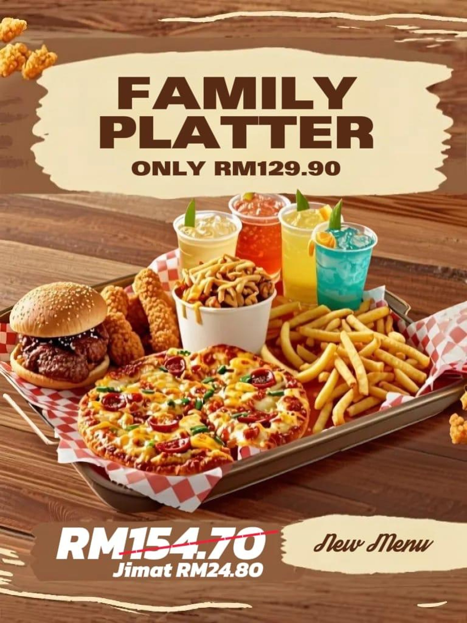 Enjoy our Fried Chicken, 100% Premium Beef Burgers,Loaded Fries, Pizzas, Mocktails, Sundae and more!